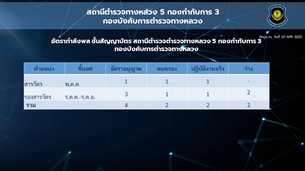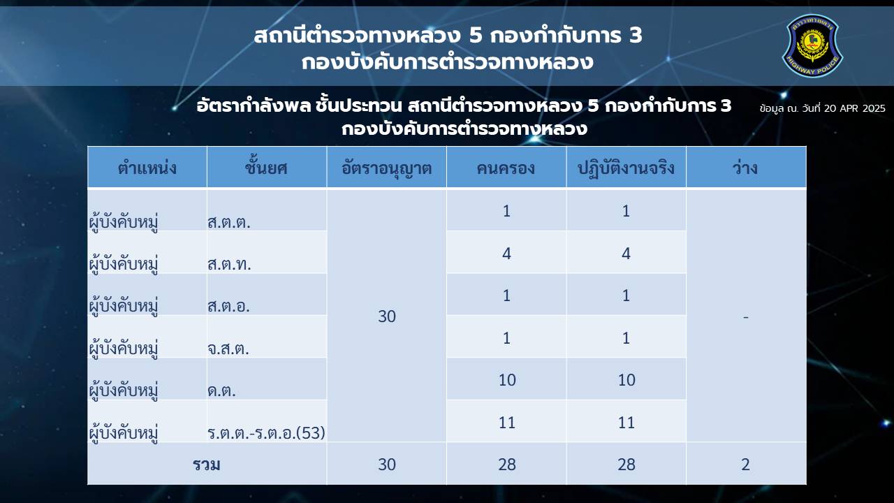 O2 ข้อมูลผู้บริหาร อัตรากำลังและพื้นที่ที่รับผิดชอบ